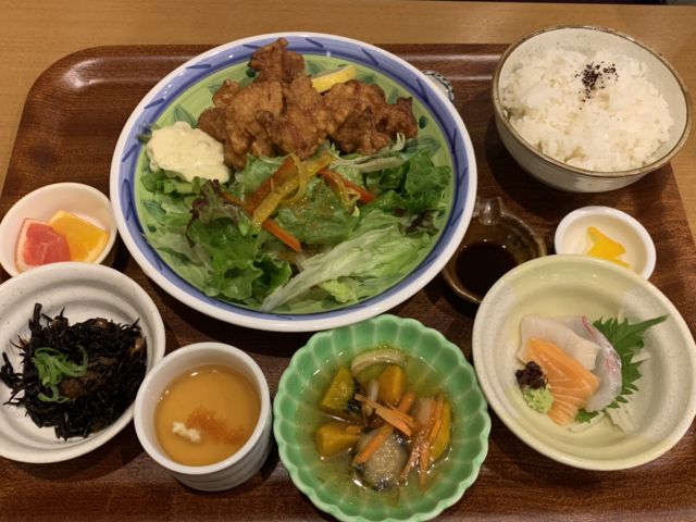 小鉢も何種類か付いていて、メインに汁物などバランスが取れた定食でした。